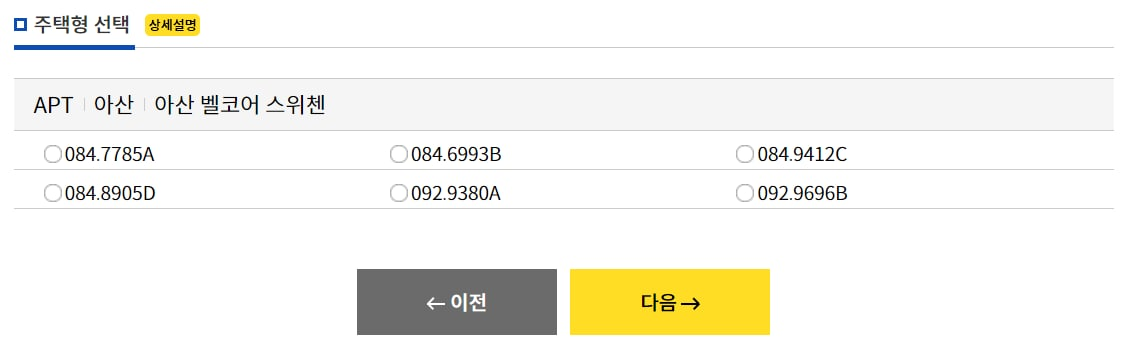 주택청약 신청은 총 다섯가지 절차로 이루어지는데, 가장 중요한 절차는 바로 주택형 선택이라고 할 수 있겠죠!